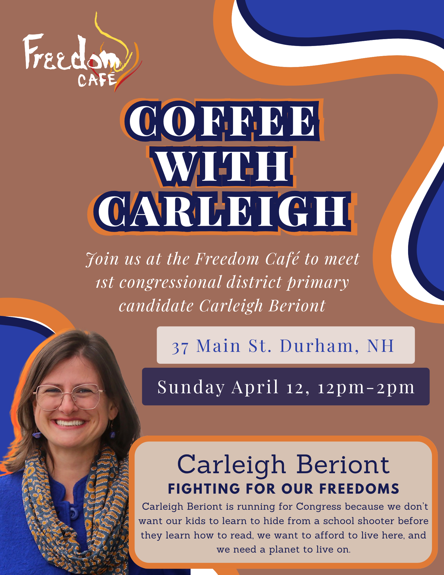 I sat down with Delaney Nickerson at The New Hampshire, the campus newspaper for the University of New Hampshire to talk about my campaign and our gathering at noon on April 12th at the Freedom Cafe in Durham.