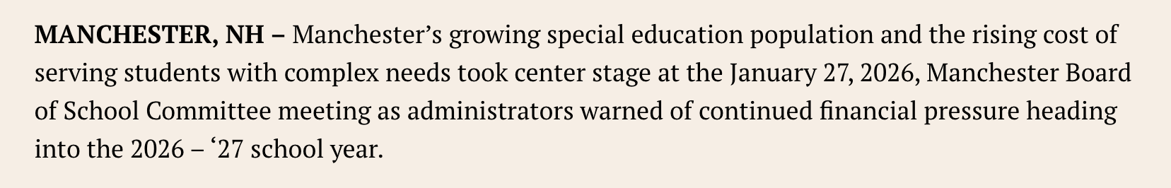 “School committee reacts to special education overview presentation” - Andrew Silvia, Manchester Ink Link