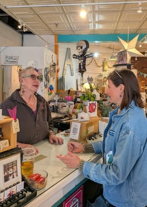 Visiting Melissa— the owner and curator of The Studio, a gift shop in downtown Laconia. She knows the stories of all the makers of the clothing and goods she sells, and every thing is chosen with the intent to bring joy.